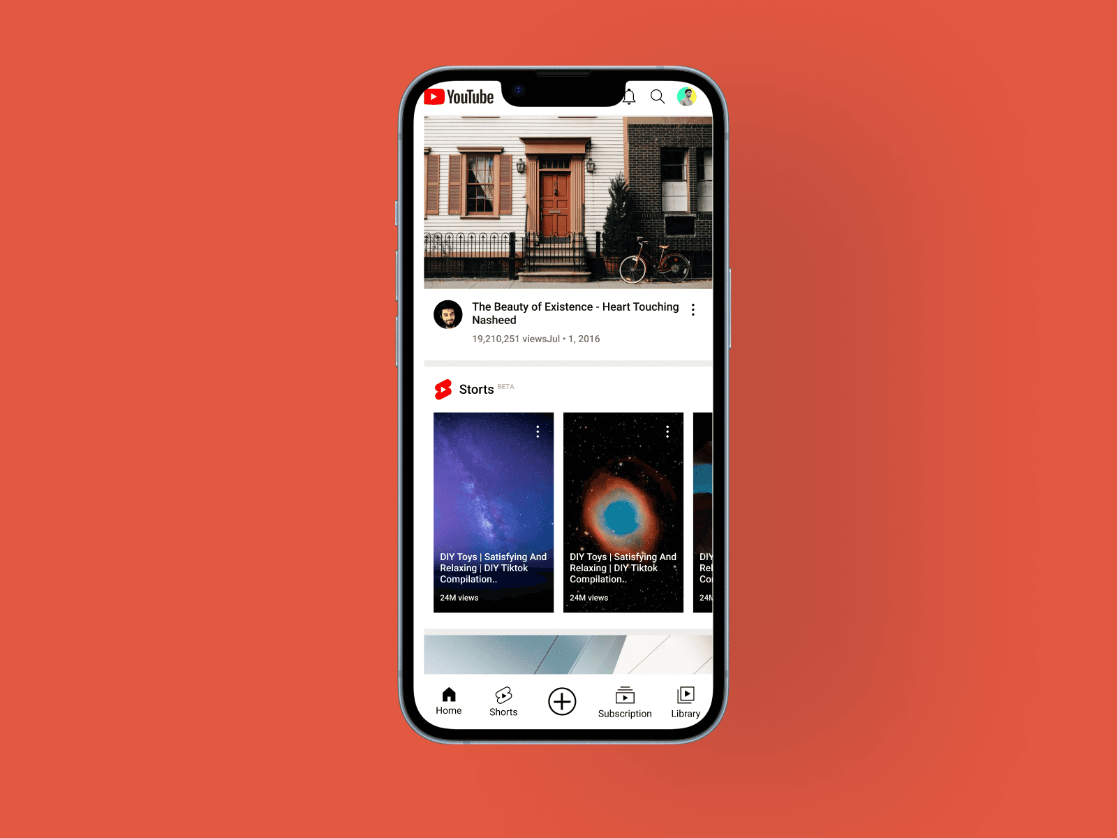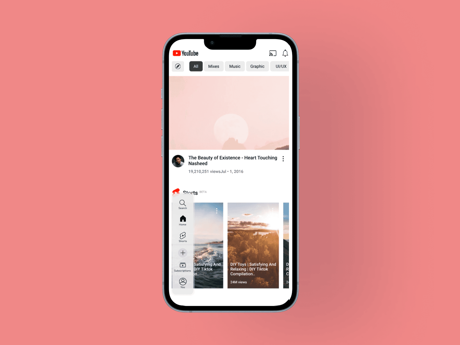 YouTube's original navigation is positioned at the bottom and top of the screen, with buttons extending across the full width. Through user research, I found that reaching these corners with one hand is difficult for many users. The issue varies depending on hand size, phone dimensions, and grip style, but it becomes particularly challenging for users with upper-limb constraints, whether permanent, temporary, or situational.